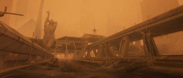 Por otro lado, cada una de estas imágenes; entre las luces de neón, la neblina, las naves y la interminable cantidad de luces que permiten resaltar la silueta de la futurista ciudad, crean la atmósfera perfecta.