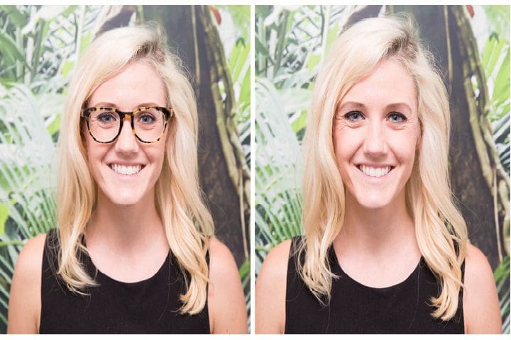 Photoshop es una herramienta que sirve de mucha ayuda, sin embargo para estas situaciones resultaría engorroso gastarse horas intentando combinar una foto de tu sujeto con el brillo en los lentes y otra en la misma pose sin ellos, cuando puedes aprender a colocar la luz en el lugar correcto y ahorrarte horas que puedes aprovechar en hacer más fotos.